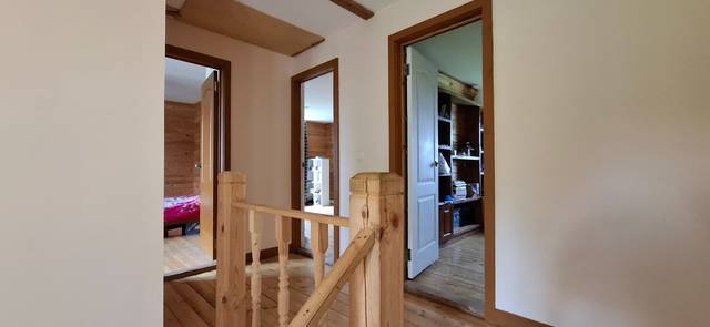 УЮТНЫЙ ДВУХЭТАЖНЫЙ ДОМ НА УЧАСТКЕ 60 СОТОК В МАЛОНАСЕЛЕННОЙ ДЕРЕВУШКЕ У ЖИВОПИСНОГО ОЗЕРА, РЯДОМ С ПУШКИНСКИМ ЗАПОВЕДНИКОМ В ПСКОВСКОЙ ОБЛАСТИ. К продаже предлагается двухэтажный, высоко и достаточно уединенно расположенный, рядом с живописным озером, уютный деревянный дом на участке 60 соток ЛПХ земли поселений с возможностью расширения. Очень теплый добротный дом построен в 2015 году по Северо - Канадской каркасной технологии для сурового климата, с монолитным противопожарным известково - стружечным наполнением и толщиной стены 38 см., наполнение стен предусмотрено так же против грызунов, находится в малонаселенной очаровательной деревушке Лябино Новоржевского р-на у чистейшего живописного озера, по соседству с чудесным смешанным грибным и ягодным лесом, совсем рядом с Государственным мемориальным и природно-ландшафтным музеем заповедником имени А.С. Пушкина, 17 км. по асфальтированному шоссе и в 4-х километрах от "Имения Алтунъ" - известного дорогостоящего гостиничного комплекса в Пушкинских Горах. В доме два полноценных этажа, на первом этаже большая кухня совмещенная с гостиной, прихожая, санузел с ванной и кладовая, на втором три отдельные комнаты, одна из которых с гардеробным помещением, а другая с видом на озеро. Отопление - высоко эффективная, экономичная печь, отлично справляется с обогревом всего дома без исключения, площадью немногим более 100-та кв.м. Повсеместно установлены двойные стеклопакеты с тройным остеклением, предусмотрены два дополнительных выхода на участок прямо с гостиной. Холодная и горячая вода, круглогодичный водопровод заведен из местного родника, питьевая вода прямо из под крана отличного качества. Электричество 15 кВт, три фазы. Телефонная связь и стабильный интернет 4G. В доме остается вся обстановка, мебель и техника, состояние - заезжай и живи. Крытая терраса с бетонированным основанием примыкает прямо к дому и умещает две машины, а так же дровяник и небольшую зону отдыха, есть помещение для сауны. На высоком участке растут молодые сосны, яблоневый сад, вишня, малина, смородина и ирга. Во дворе стоит небольшой сарай - мастерская с настоящим бетонным погребом под ней в полный рост для хранения заготовок. Просто замечательные соседи, в деревне постоянно проживает 4-5 домов, воровства нет, приходит автолавка. Круглогодичный подъезд от асфальтированного шоссе 5 км. по живописному смешанному лесу, чистится зимой и никогда не раскисает осенью. Продается без торга. Звоните, расскажу все подробности.