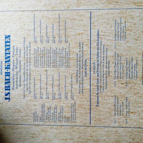 Подарочное издание Германия. Духовные кантаты И.С.Баха в исполнении Мюнхенских хора и оркестра Баха. Дирижёр Карл Рихтер. Солируют сопрано, контральто, тенор и бас. 6 виниловых дисков в красивой упаковке. Имеется буклет с иллюстрациями, описанием и текстами кантат на немецком, английском и французском языках. Запись и издание ФРГ 1970 годов.