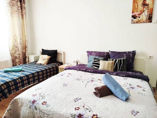 3.Широкую двуспальную кровать с удобным матрасом и чистым постельным бельем для крепкого сна. Две односпальные кровати.