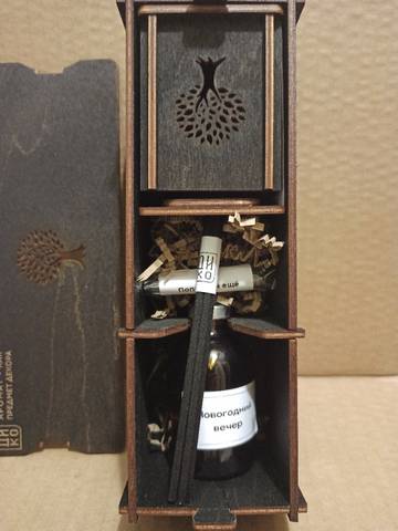 Диффузор для дома с палочками, аромат "Новогодний вечер" /коричневый/ в подарочном наборе.