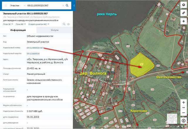 Предлагается к продаже земельный участок в районе деревни Волнога Нерльского сельского поселения Калязинского района Тверской области общей площадью 2,5451 га (254,51 сотки). К № 69:11:0000020:367. Категория земель – земли сельскохозяйственного назначения (находится в стадии перевода в земли поселений). Вид разрешенного использования – для дачного строительства. Цена: 3 950 000 рублей (разумный торг). Продается как единый массив. Очень красивые места. До реки Нерль 200 метров. Ширина реки 720 м. Рядом большая деревня. До деревни от участка 80 метров. В деревне магазин, рыболовно-туристическая база "Скнятино". Электричество проходит по границе участка. Возможность подключения есть. Река, леса, поля. Рыбалка, охота. До реки Волга (Угличское водохранилище) – 650 м. по реке Нерль. Рядом Скнятинское охотничье хозяйство (от участка 920 м.), лодочная станция и рыбохозяйство. До гор. Калязина 42,0 км., до МКАД 180 км. Приятное место для коттеджного поселка, базы отдыха (аренда домов) и т.д.