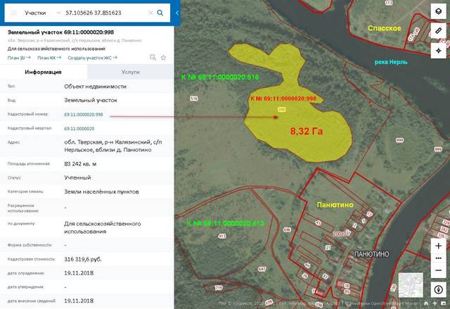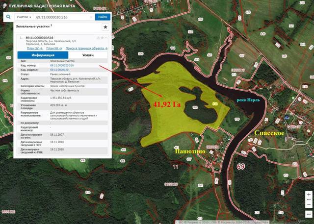 Предлагаются к продаже 3-и земельных участка в деревне Панютино Нерльского сельского поселения Калязинского района Тверской области общей площадью 57,2535 га (41.9293 Га, 7.0 Га, 8.3242 Га). К № 69:11:0000020:516, К № 69:11:0000020:413, К № 69:11:0000020:998. Категория земель – земли населенных пунктов. Вид разрешенного использования – для ведения сельского хозяйства. Цена - 142 300 000 рублей (разумный торг). Продается как единый массив. Красивые места. Река Нерль. Собственная береговая линия длиной 1,0 км. Пологий берег. Дно песчаное! На территории собственный залив. Ширина реки 90 м. В 600 м. на противоположном берегу расположена красивая церковь Преображения Господня в селе Спасское (видно с реки). Электричество проходит по территории участка. Возможность подключения есть. Красивые леса, поля. Рыбалка, охота. До реки Волга (Угличское водохранилище) – 16 км. До гор. Калязина 35,0 км., до МКАД 180 км. Приятное место для коттеджного поселка, базы отдыха (аренда домов), Охото-Рыболовной базы.