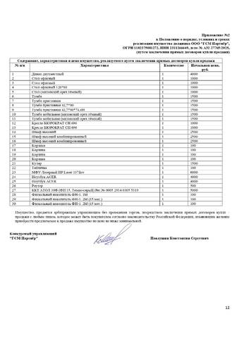 Перечень реализуемого имущества прилагается к настоящему сообщению.