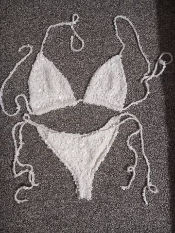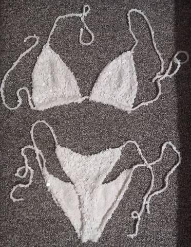 Ручная работа. Купальник связан из хлопка с королевскими пайетками.