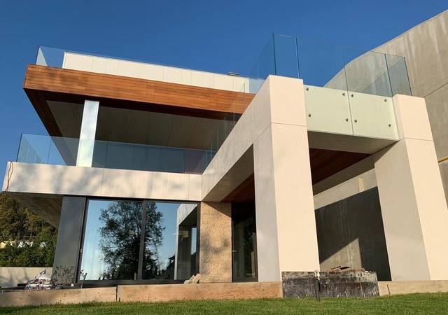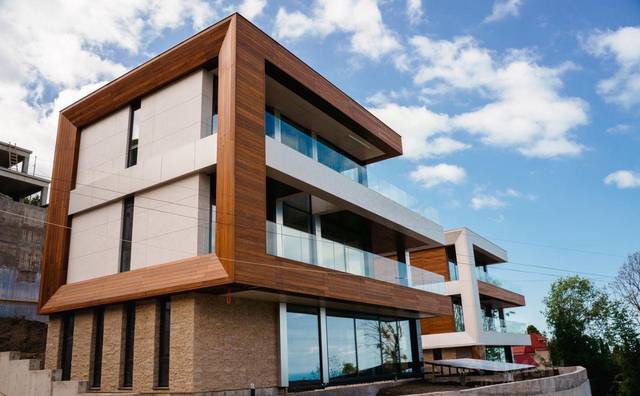 Все виллы в едином стиле, но не копируют друг друга. Удачное расположение, относительно друг друга, предоставляет уникальные виды из каждой виллы, благодаря трехметровым немецким раздвижным окнам SCHUCO. Облицовка фасадов натуральным камнем и Бразильским деревом Лоуро, в сочетании с Итальянской керамикой Archskin Laminam подчеркивают статусность и современность каждой виллы. Теплый оттенок вызывает ощущение уюта и равновесия. А натуральные отделочные материалы говорят об экологичности поселка в целом.