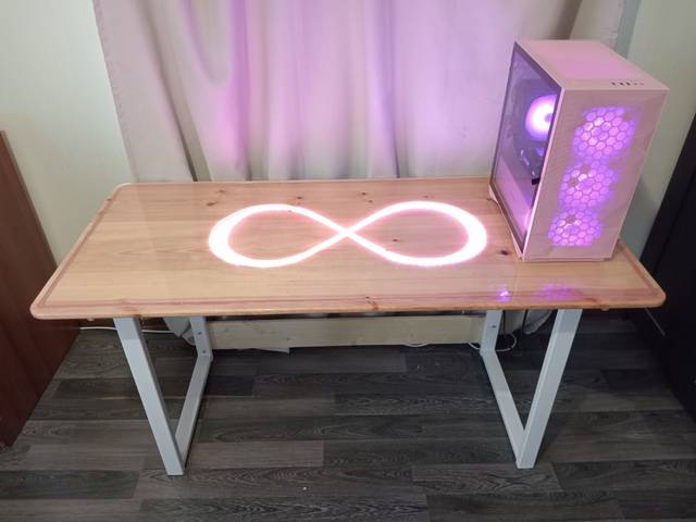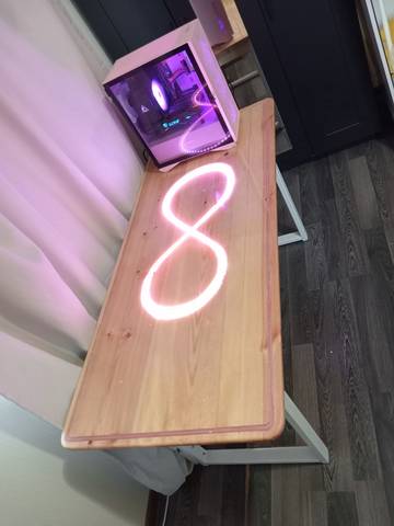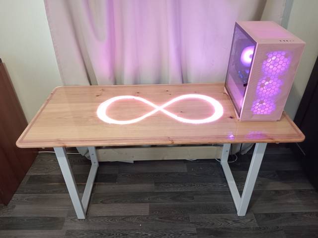 Продаю качественный стол полностью из массива древесины, а не из офисных опилок + системный блок в одном стиле. Стол имеет вырезы залитые эпоксидной смолой с подсветкой, сверху стол полностью покрыт добротным слоем эпоксидной смолы с блёстками. Делал для себя за качество ручаюсь, стол не шатается. Длина стола 143 см, ширина 63 см, высота 70 см.