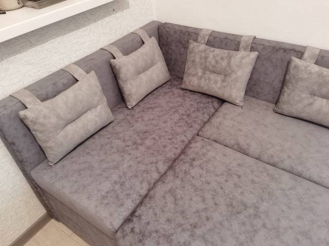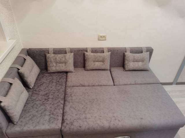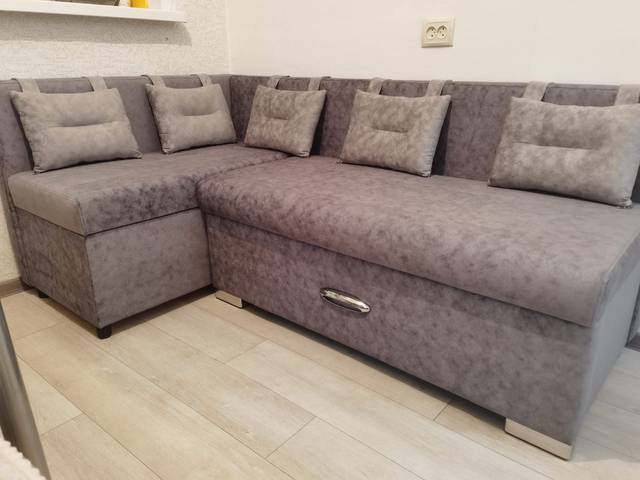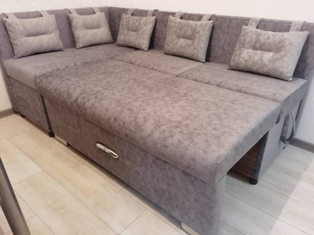 кухонный диван со спальным местом, спальное место 100см.х190см. Размер можно корректировать под Ваши площади кухни. Мы используем только качественные материалы, каркас из сосны, ящики из ЛДСП, и ППУ ( пенополиуретан )высотой 60 мм. что вполне достаточно для комфортного сна.