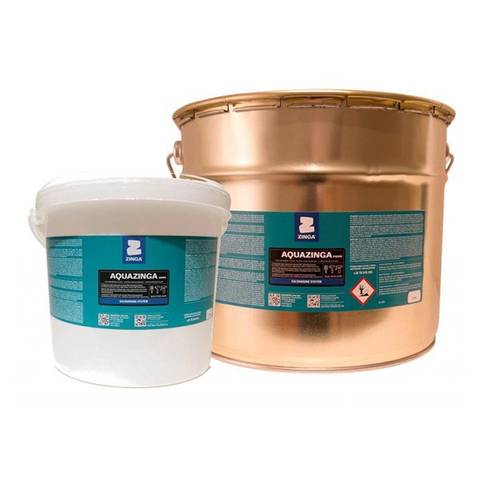 Aquazinga представляет собой двухкомпонентное антикоррозионное цинковое покрытие на 100% водной основе и неорганических силикатах цинка. Благодаря высокому содержанию цинка в сухом слое (94%) оно всё ещё обеспечивает катодную защиту черных металлов.