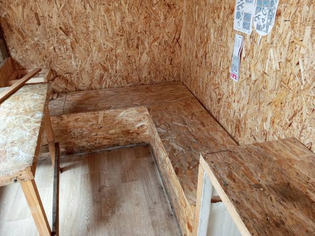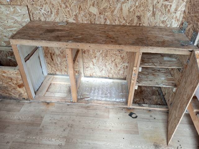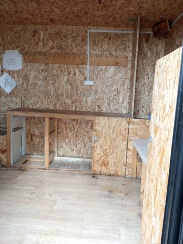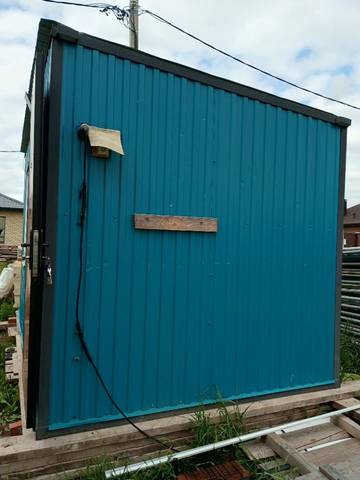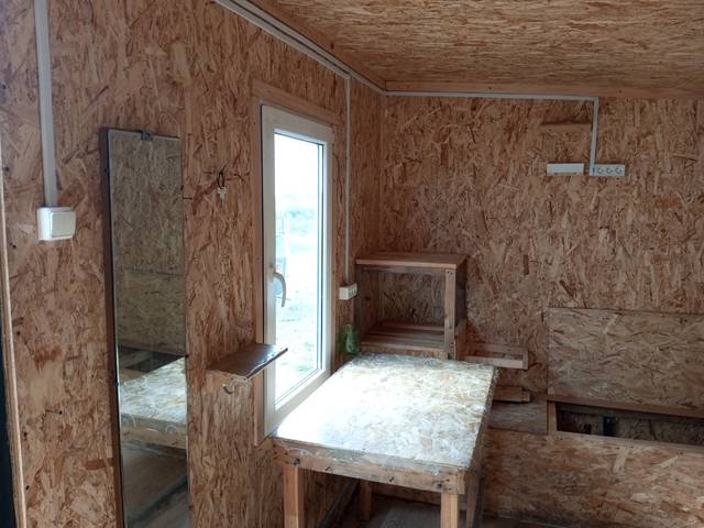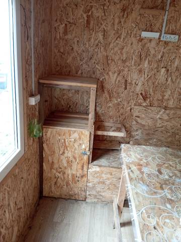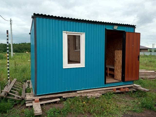 бытовка б/у,4 на2.40 со встроенной мебелью, проведенная электрика в трёх местах розетки, утепленая, обшита осп, постелен ленолиум. для строительства , мастерской, дачи.