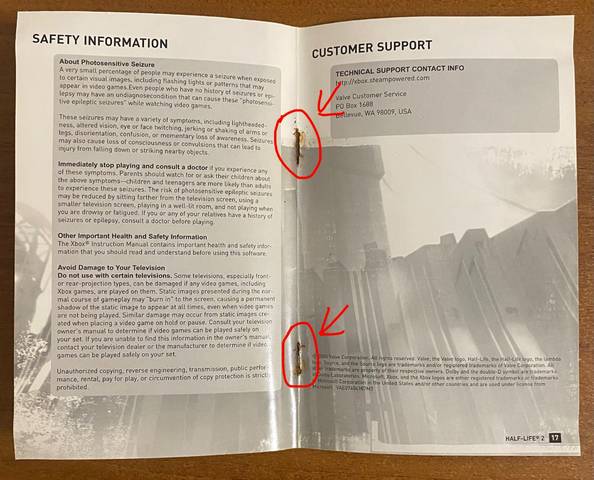 Продаю Игры Half-life 2 (2 копии) для Xbox (Xbox Original). Цена за проблемную копию Игры - 800 рублей, за нормальную копию Игры - 1000 рублей, за обе Игры - 1800 рублей. Игры лицензионные. У Игр коробки в хорошем состоянии. У одной копии игры у мануала сгнили держатели для страниц (Фото 4) и из-за этого некоторые страницы отсоединились (Фото 5 и 6). У Игр диски в хорошем. Игры полностью на английском языке. Торг уместен. Обмен не интересует!!! Товар курьером, Почтой России, СДЭКом, Nado. Info доставкой и т.д. не отправляю!!! Только лична встреча с Клиентом и Самовывоз товара!!! Обосновывать причину отказа отправки Товара Курьером, Почтой и т.д. и про Самовывоз товара не обязан!!!