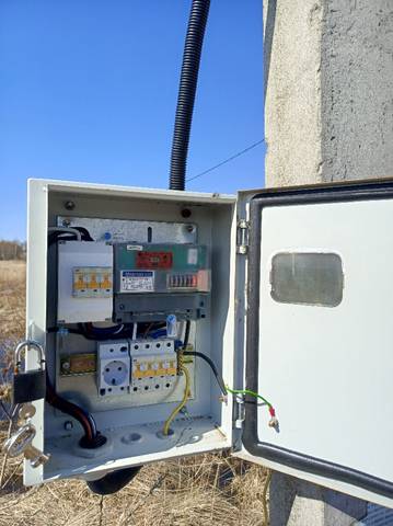 Электричество подключено: 3 фазы (15 кВт). Счётчик установлен.