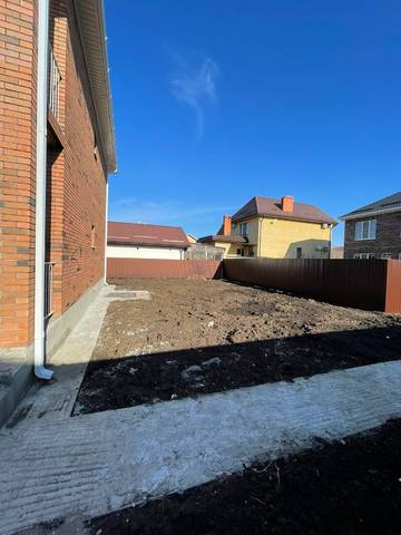 2. Во дворе завезен плодородный чернозем, бетонная отмостка вокруг дома, бетонный заезд под машину, откатные ворота.