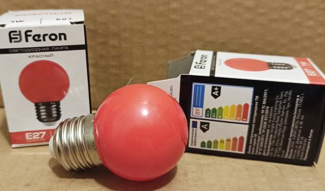 Лампа светодиодная FERON TM LB E27 1W Красный свет.