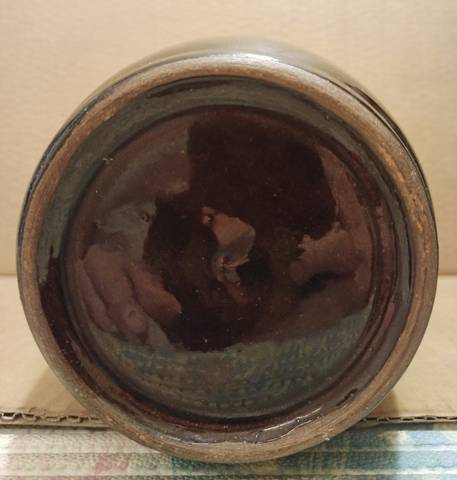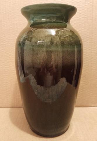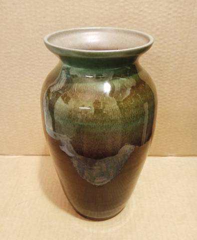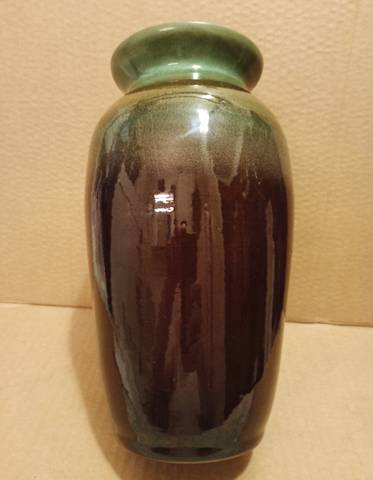 Продается винтажная керамическая ваза с капельной глазурью, выполненная в коричневых тонах, переходящая кверху в зелёный оттенок.