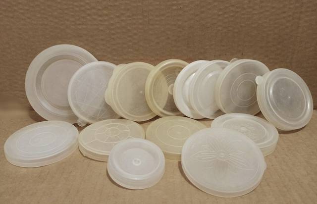 Крышки пластиковые СССР, для стеклянных банок, коллекция. 14 штук.