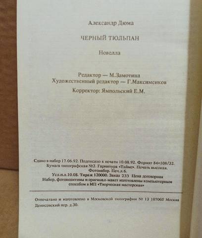 Александр Дюма. Чёрный тюльпан. 1992. Драматические события в Голландии 1672 года - восстание черни и линчевание одного из правителей страны - переплетаются в романе "Черный тюльпан" с романтической историей любви. Принесет ли счастье героям роковой черный тюльпан? Тип обложки - Мягкая обложка. Состояние - очень хорошее.