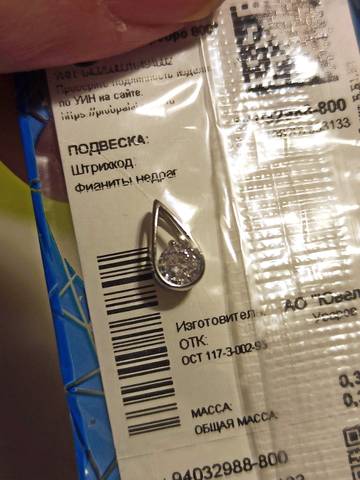Вид товара Ювелирные изделия