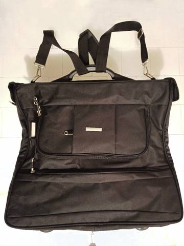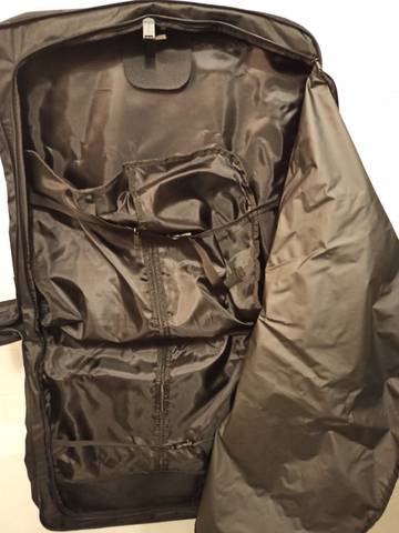 Внутри: 3 отделения на 2 молниях (2 для одежды + одно для обуви) + выносной чехол для сорочек на 1 молнии.