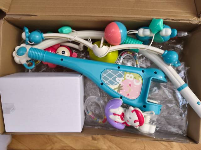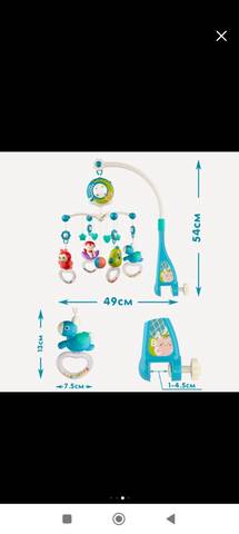 Нас не подошёл, так как бортики на кроватке круглые ,и не удалось ни чем закрепить . Слушать только музыку .