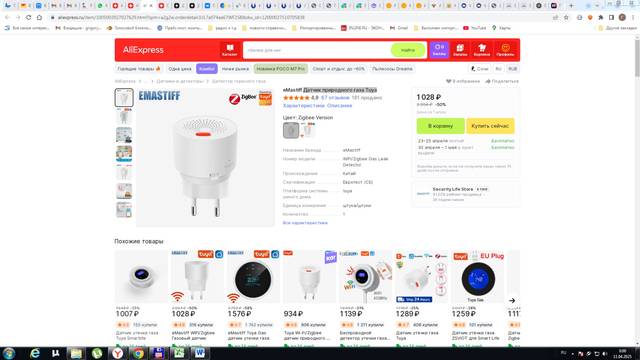 ВНИМАНИЕ! Для работы данного датчика с приложением TUYA необходим Zigbee Хаб (шлюз) TUYA! Этот датчик не может быть подключен напрямую к Алиса, он может быть подключен только через шлюз. Возможна работа в автономном режиме - без подключения к системе умного дома.