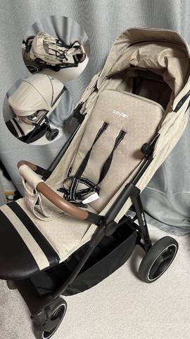 Спинка регулируется. Передние колеса - поворотные. Глубокий капор.