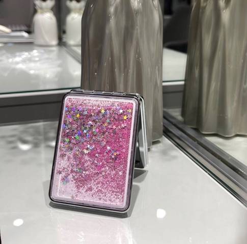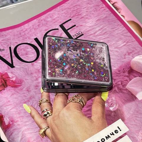 Оригинальный дизайн привлечет внимание окружающих. Вы только посмотрите на зеркальце с переливающимися блестками и голографическими звездочками внутри.
