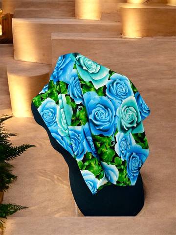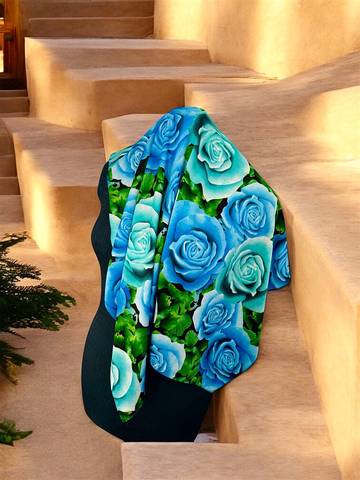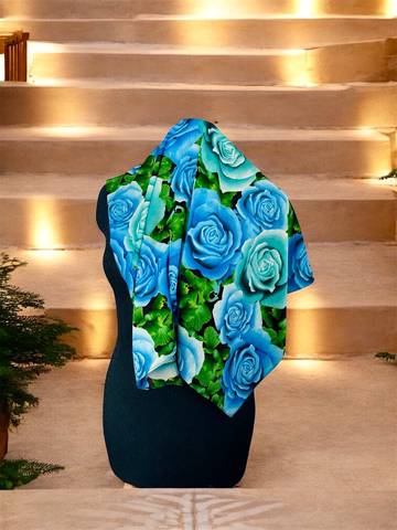 Красивый и приятный на ощупь платок в невероятно приятном цвете, напоминающим океан с синими цветами из вискозы-софт.