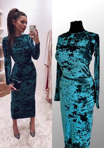 Бархатное платье от бренда Lov2Lov в красивом бирюзовом цвете, красиво смотрится на солнце.