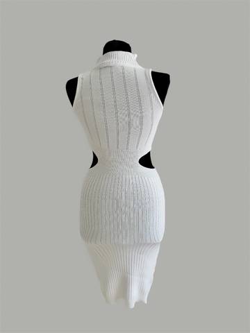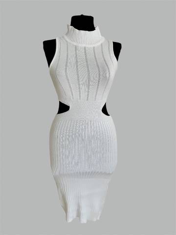 Стильное, красиво выделяющее фигуру белое платье лапша с боковыми вырезами по бокам талии от Remotamente8.