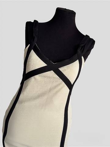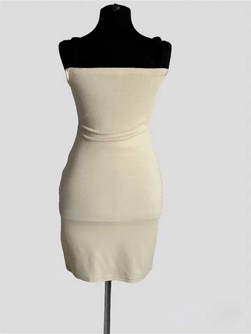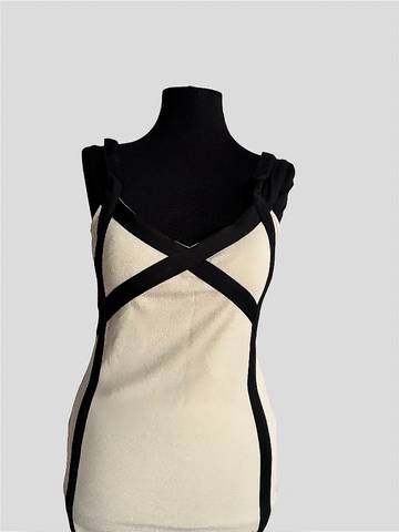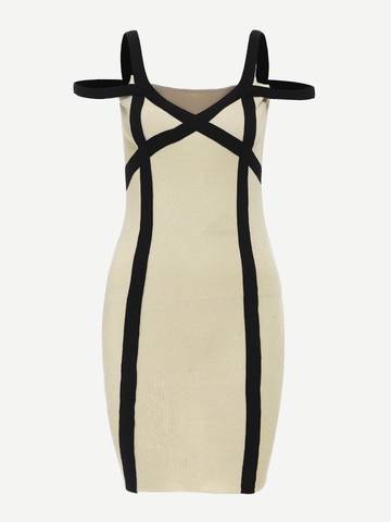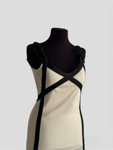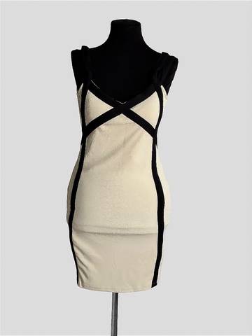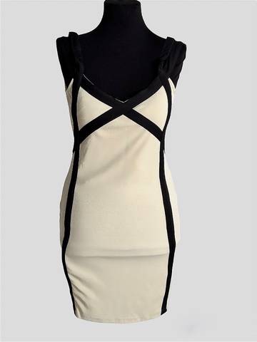 Летнее короткое платье в цвете нюд с чёрными окантовками