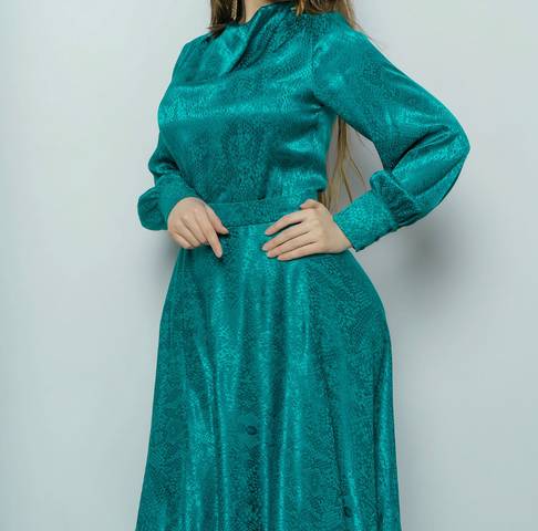 Брендовое длинное платье из 100% вискозы в цвете «бирюза» 3 в 1 от Hislerim.