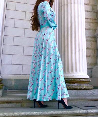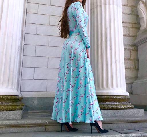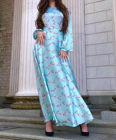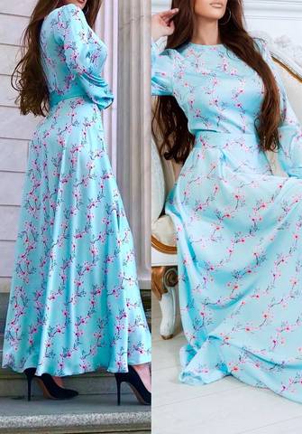 Новое нежное и красивое длинное платье в голубом цвете из шелка армани. Платье идёт с поясом.