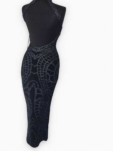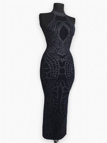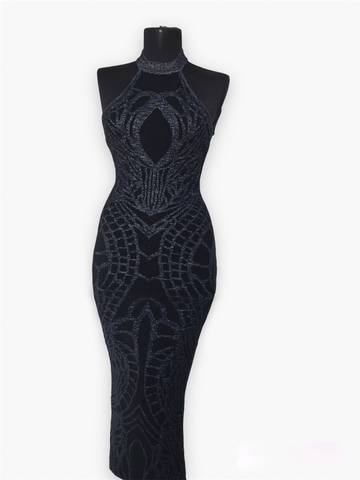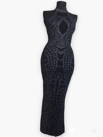Брендовое вечернее чёрное длинное платье в облегающем силуэте подойдёт для любого выхода.