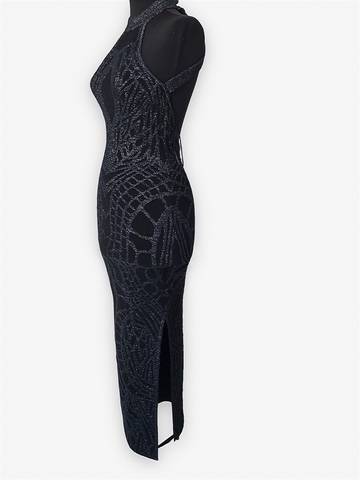 Новое красивое женское чёрное платье из вискозы без рукавов с открытой спиной и разрезом на ноге слева от бренда Brusnika.
