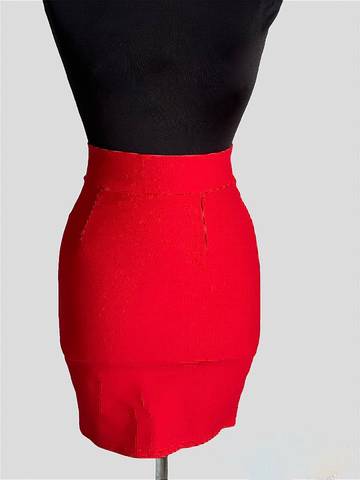 Красная юбка с завышенной талией с небольшим разрезом сзади