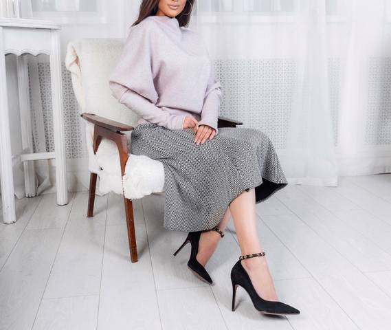 Длинная юбка годе в серо-чёрном цвете с узором из Джерси Ангоры от Hislerim. Красивая и удобная тёплая юбка из очень приятной ткани отлично подойдёт на прохладное/холодное время.