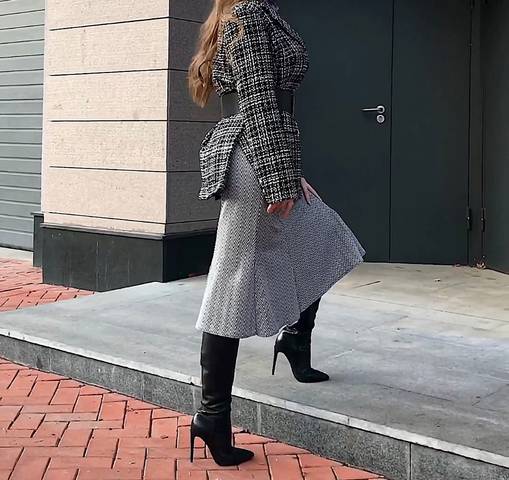 Серо-чёрная юбка Jersey годе с узором из Джерси Ангоры