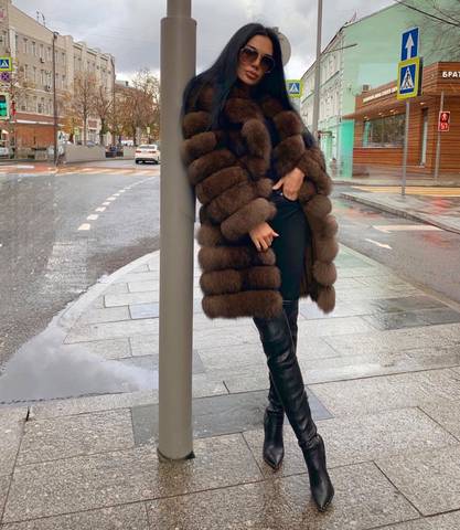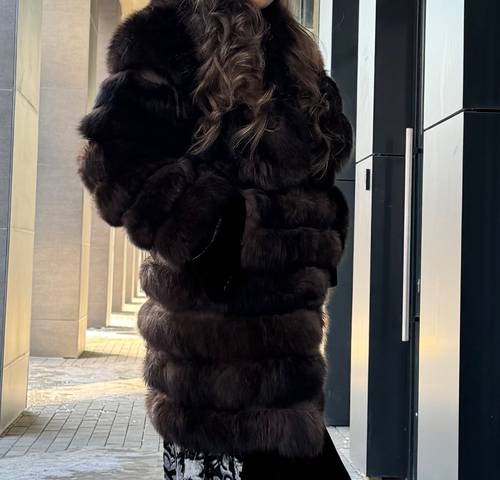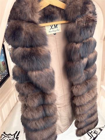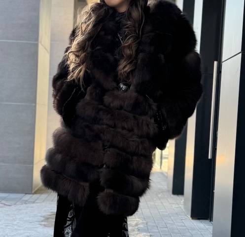 Очень красивая коричневая шубка с английским воротником из натурального финского песца. Очень женственно сидит по фигуре и подчеркивает красоту.