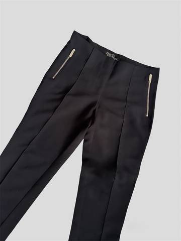 Лёгкие женские брюки чёрного цвета с декоративными замками.
