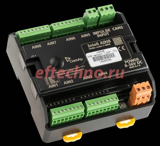 Расширительный модуль расширения ComAp Inteli AIN8TC - позволяет использовать до 8 аналоговых входных каналов для измерения температуры с помощью термопар. Inteli AIN8TC полезен в ситуациях, когда требуются чрезвычайно точные показания температуры. К каждому контроллеру можно подключить до 10 (в зависимости от прошивки контроллера) модулей, что делает точные показания температуры простыми и надежными. Он совместим с термопарами типов J, K и L и поддерживает компенсацию холодного спая.
