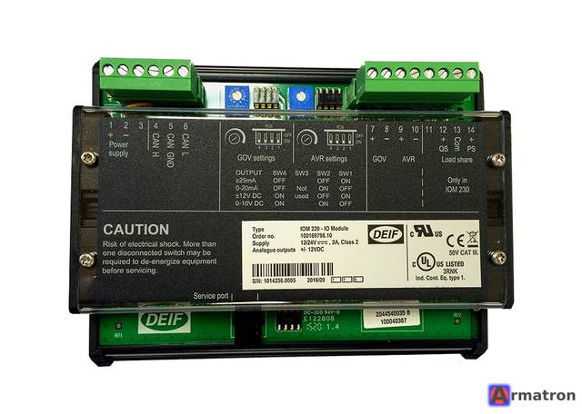 Модули серии IOM 220 это интерфейс между контроллерами серии AGC 200 и регуляторами частоты вращения (РЧВ) и напряжения генератора (РН). Модули IOM 200 подключаются к AGC 200 с использованием портов AGC 200 CANbus A, B или C. Данный модуль поддерживает практически все версии аналоговых регуляторов частоты вращения двигателя, у которых есть возможность внешней регулировки напряжения...