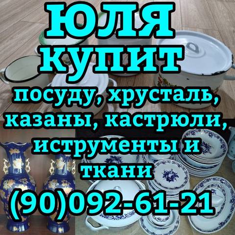 Посду, кухонную утварь, ложки-вилки, поварёшки, статуэтки, покрывала, мантышницы, тарелки, касушки, пиалушки, казаны, кастрюли, сковородки, ведра, инструменты и другое.